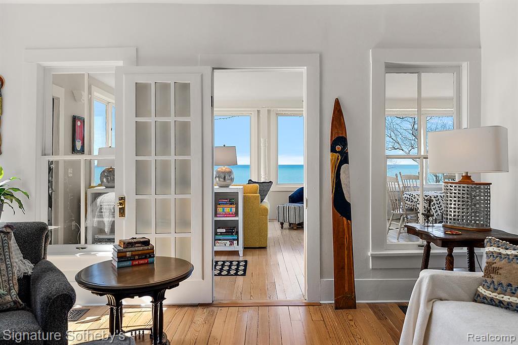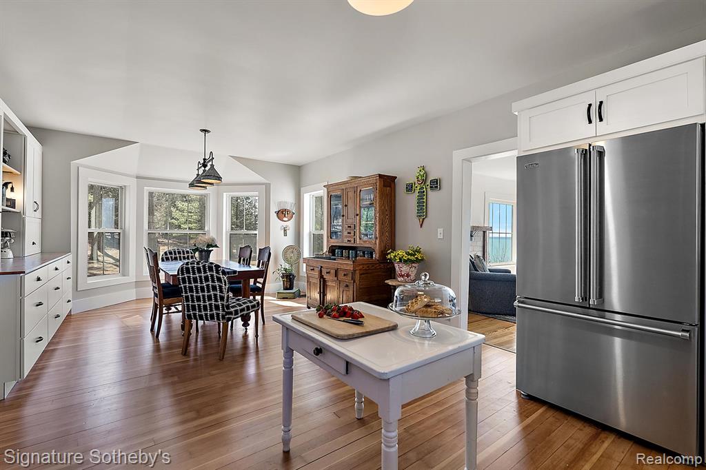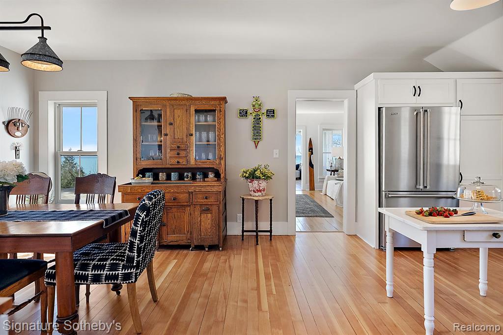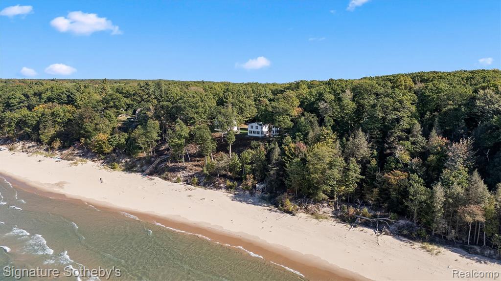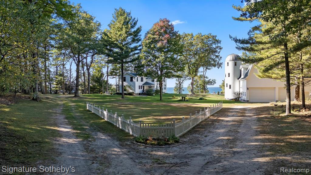 Experience the very best of Michigan’s lakeshore living at this stunning, fully renovated farmhouse built on stable dune with a major addition completed in 2012. Boasting 687 feet of private sandy beach frontage, this one-of-a-kind property offers unmatched privacy with 20+ beautiful acres to explore. Breathtaking views and timeless charm create the perfect escape for those seeking peace, beauty and refined comfort. The main farmhouse has been thoughtfully updated from top to bottom, including all new Anderson Windows, blending modern luxury with classic farmhouse character. Enjoy panoramic lake views from nearly every room. The custom kitchen features Viking appliances. Every detail has been carefully considered—from the antique barn beam fireplace mantel with hand-forged support to the remodeled bathrooms, new lighting, fresh paint, and fixtures. The primary suite offers a spa-like retreat with a remodeled bathroom, custom built-ins, and a convenient laundry area. Step outside for coffee and sunsets overlooking Lake Michigan. Beyond the main house, the custom designed barn and silo completed in 1992, provide a spectacular bonus living space with 4-car garage. The barn loft is a showstopper—boasting soaring wooden beams, a large stone fireplace, lake views, and a full kitchen. The silo staircase with a hand-crafted curved railing adds architectural charm, leading to additional guest quarters ideal for entertaining or extended stays. Every inch of this property has been refreshed, including new paint, windows, lighting, insulation, outlets, and mechanicals—offering peace of mind and modern convenience in a setting that feels worlds away. This extraordinary property combines the serenity of a lakeside retreat with the craftsmanship and comfort of a luxury estate. Whether used as a full time residence, family compound, or weekend getaway, this Lake Michigan bluff-top farmhouse is a true legacy property—where every sunset feels like a masterpiece. |