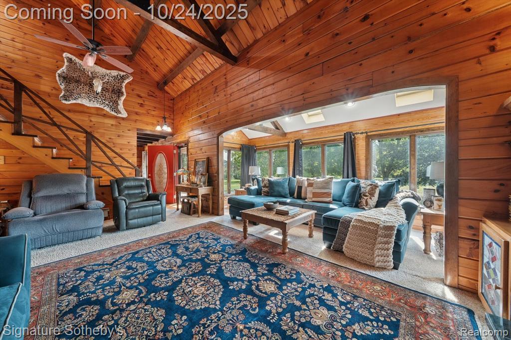 Experience the perfect blend of rustic charm and modern comfort at 4540 Timber Lane in beautiful Dryden, Michigan. Nestled on 10 private, wooded acres, this captivating log home is a true nature lover’s retreat. Inside, you’ll find rich wood tones, warm textures, and a welcoming ambiance throughout. The cozy living room centers around a charming fireplace—perfect for relaxing evenings—while the thoughtful updates bring modern convenience to every corner.